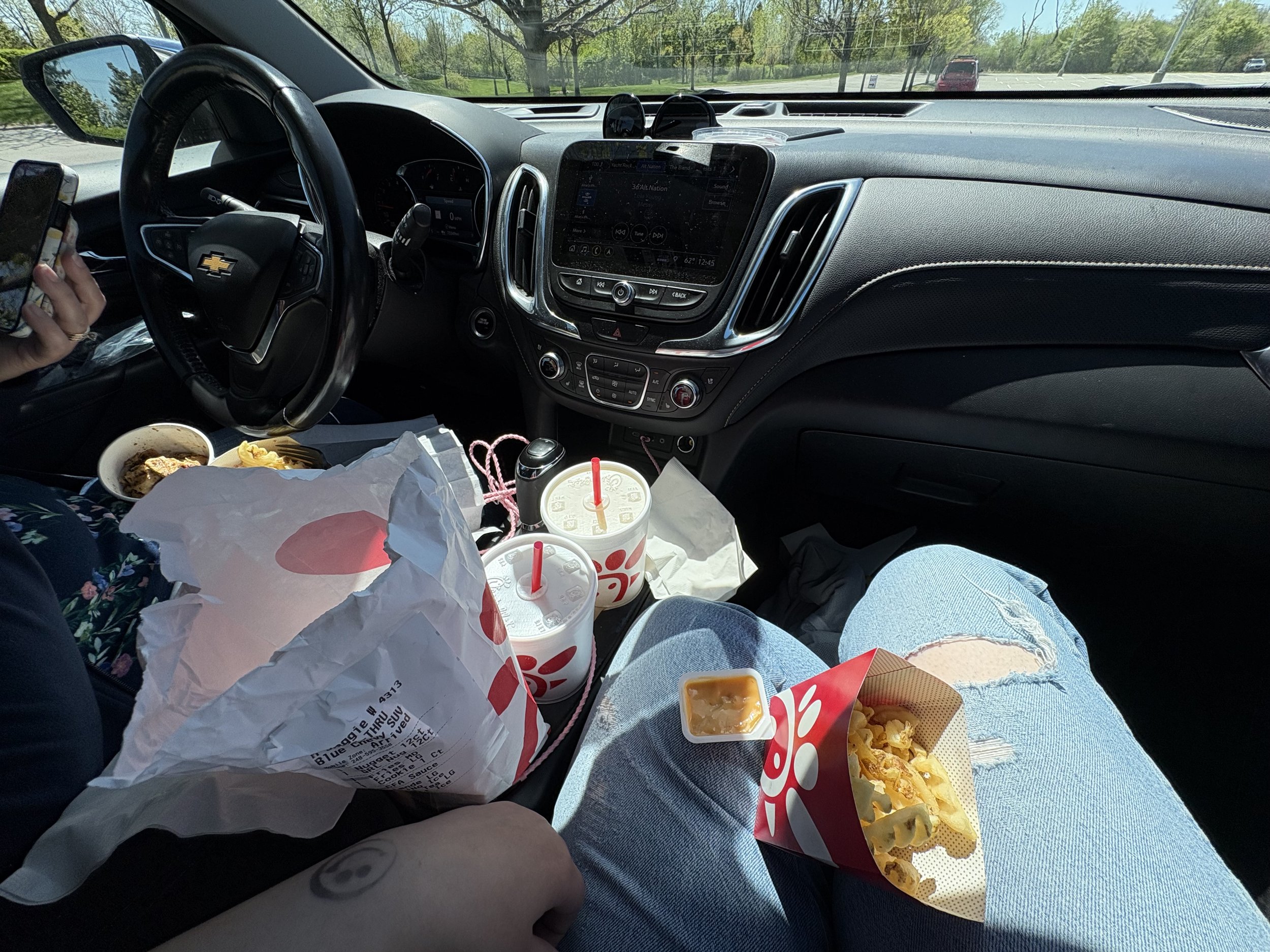 My mom drove over to where my car was parked to pick me up after I dropped my bags and we headed off to get lunch! We ended up getting chick fl a ,,,, (I’m sorry I knowwwww I’m a horrible queer person for giving them my coin). We drove back to where my car was parked and parked in some shade nearby to eat our food in the car. We gossiped about things I no longer remember but we were laughing and having a good time. After that I drove home to pack for the crop party that night where Karissa would be joining us, and we had a room at the connecting hotel to spend the night Friday into Saturday.